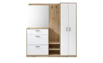 - Inklusive Spiegel, Paneel, Schuhkommode und Schrank
