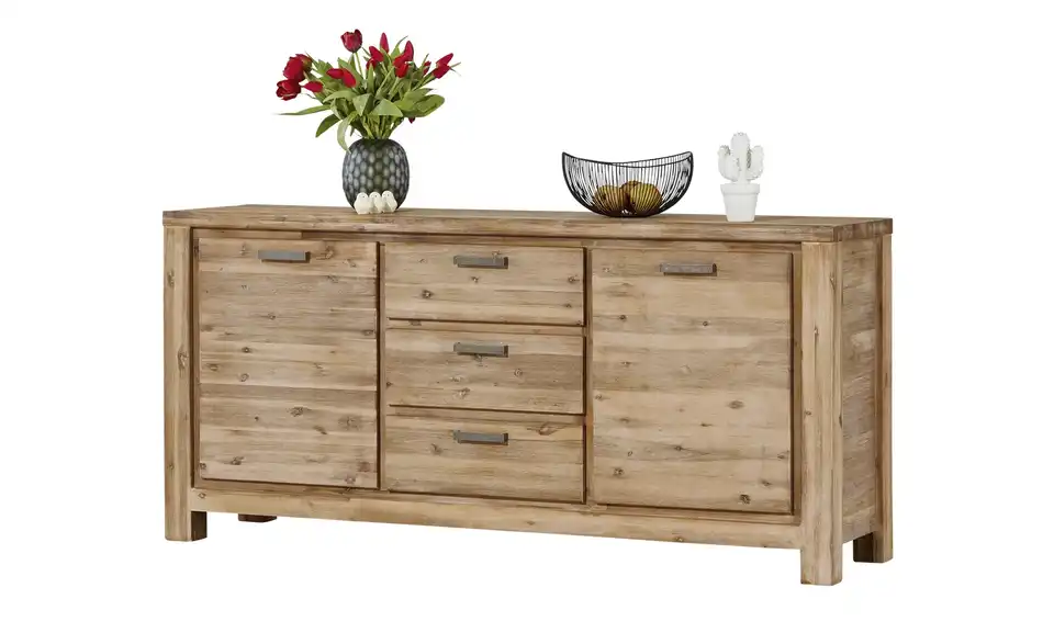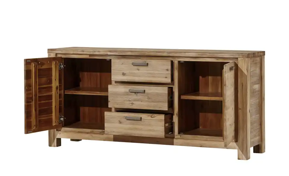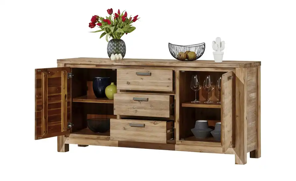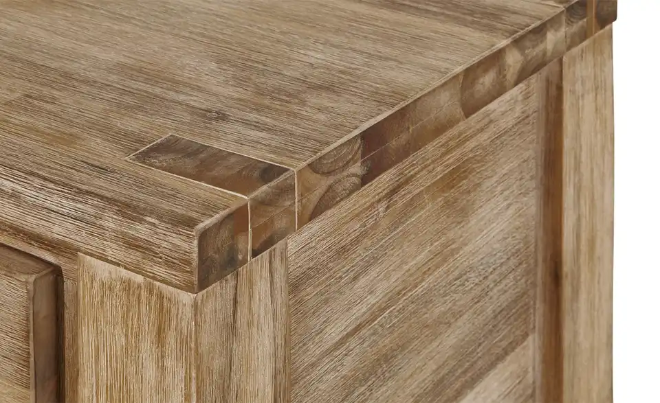 - Mehr zu MaterialKorpus und Front aus Akazie massiv sandfarben gebeizt und lackiertSeiten aus Akazie furniert sandfarben gebeizt und lackiert