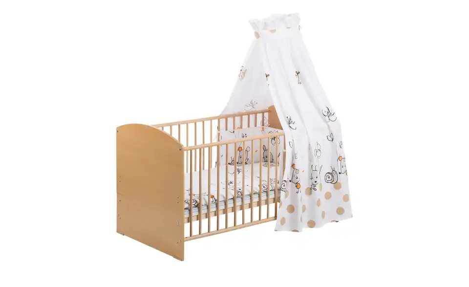 - Lieferumfang / mitgeliefertes ZubehörHimmelstangeMatratzeLattenrostBett Set 4-teilig (Bettwäsche, Nestchen, Himmel - ohne Inlett)