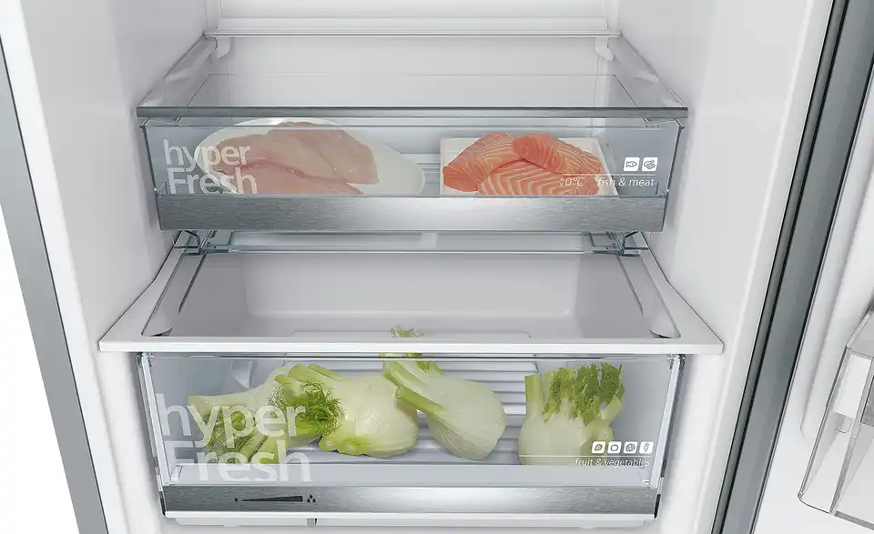 - Mehr zu Ausstattung / FunktionLagerzeit bei Störung 35 StundeAbtauautomatik KühlteilAnzahl Gefrierschubladen 3Anzahl Türen 2Anzahl Türfächer 4Anzahl verstellbarer Ablageböden 2Bedienelement Digitales TouchdisplayFlaschenregal vorhandenGefrierkapazität in 24 h 14 kgInnenbeleuchtung LEDKlimaklasse SN-TSterne Gefrierraum ****Elektronische SteuerungTemperatur regelbar GefrierteilTemperatur regelbar KühlteilTemperaturanzeigeTemperaturanzeige GefrierteilTemperaturanzeige KühlteilTemperaturbereich -24 bis 2 °CAlarmfunktionGesamte Anzahl Ablageböden 5Gesamtnutzinhalt aller Frischhalte- und Kühlfächer 249 LiterGesamtnutzinhalt aller Gefrierfächer 94 Liter
