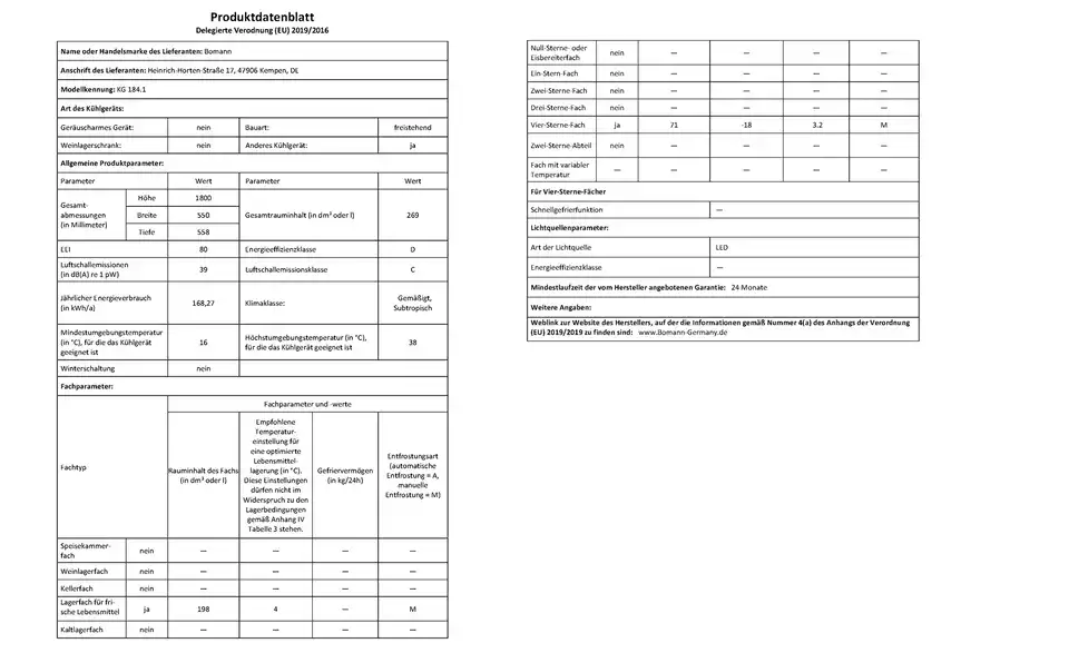 - Mehr zu Ausstattung / FunktionLagerzeit bei Störung 15 StundeAbtauautomatik KühlteilAnzahl Gefrierschubladen 3Anzahl Türen 2Anzahl Türfächer 4Anzahl verstellbarer Ablageböden 3Bedienelement DrehreglerGefrierkapazität in 24 h 3 kgInnenbeleuchtung LEDKlimaklasse N-STSterne Gefrierraum ****Elektronische SteuerungTemperatur regelbar KühlteilTemperaturbereich -18 bis 8 °CGesamte Anzahl Ablageböden 4Gesamtnutzinhalt aller Frischhalte- und Kühlfächer 198 LiterGesamtnutzinhalt aller Gefrierfächer 71 Liter