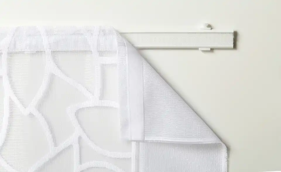 - Lieferumfang / mitgeliefertes ZubehörFlauschband, Klettschiene und Beschwerungsstab