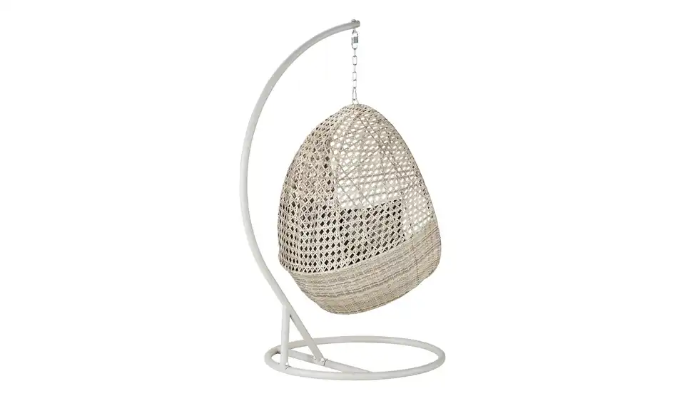 Der Hängesessel Tahiti von a casa mia fasziniert durch seine außergewöhnliche Gestaltung. Er scheint über dem Boden zu schweben, da der halbkugelförmige Sitz an einer Gliederkette an einem Gestell befestigt ist. Dadurch können Sie in dem Sessel sanft schwingen . Das passende Gestell steht auf einem breiten, kreisrunden Standfuß. Ein Sitzkissen gehört zu dem Sessel dazu.Lieferung & Versand