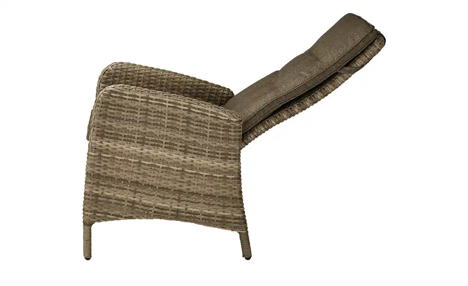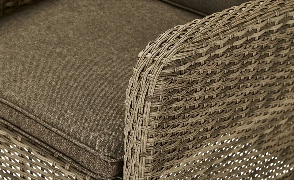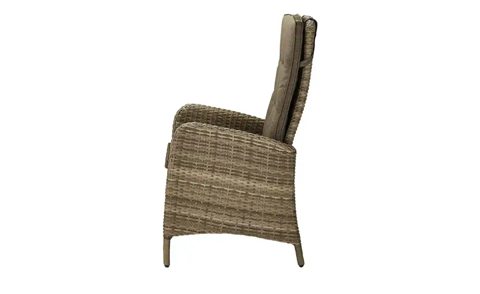 Machen Sie es sich im Freien bequem: Auf dem Diningsessel Reggio. Der Outdoorsessel besitzt ein robustes Gestell aus pulverbeschichtetem Aluminium. Dieses ist mit strapazierfähigem, champagnerfarbenem Kunststoffgeflecht ummantelt. Dadurch ist der Diningsessel wetterfest und für Terrasse, Garten und Balkon geeignet. Verstellen Sie die Rückenlehne stufenlos und genießen Sie die sonnige Jahreszeit. Übrigens: Sitz- und Rückenkissen sind im Lieferumfang enthalten und farblich auf den Sessel abgestimmt.Lieferung & Versand