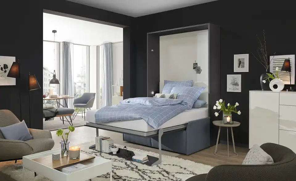Mit den Schrank-Betten von nehl können Sie zwei Wohnbereiche gekonnt vereinen. Ob als Schlafplatz in kleinen Wohnungen oder als Gästebett, nehl Schrank-Betten sind die komfortable Lösung. Wenige Handgriffe genügen und aus dem Schrank oder der Schrank-Couch-Kombination wird ein bequemer Schlafplatz. Inklusive Lattenrost und Matratze.