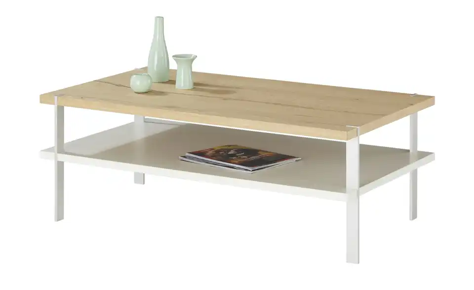 - Mehr zu MaterialTischplatte aus Holzwerkstoff in Wildeiche furniertAblageplatte aus Holzwerkstoff in Polarweiß matt lackiertTischbeine aus Matall gebürstet in Edelstahloptik