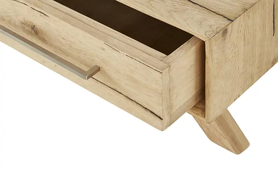 - Mehr zu MaterialGriffe aus Metall silberfarben gebürstetTischlerplatte Vollholz-Platte mit zwei Schichten aus Eichenfurnier und einer mittleren Schicht aus Kiefer-Massivholz-Leisten