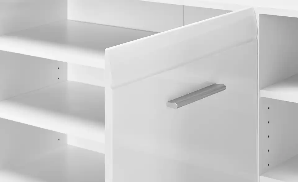 - Mehr zu MaterialKorpus und Einlegebretter Holzwerkstoff kaschiertFront und Kanten MDF foliert, tiefgezogen