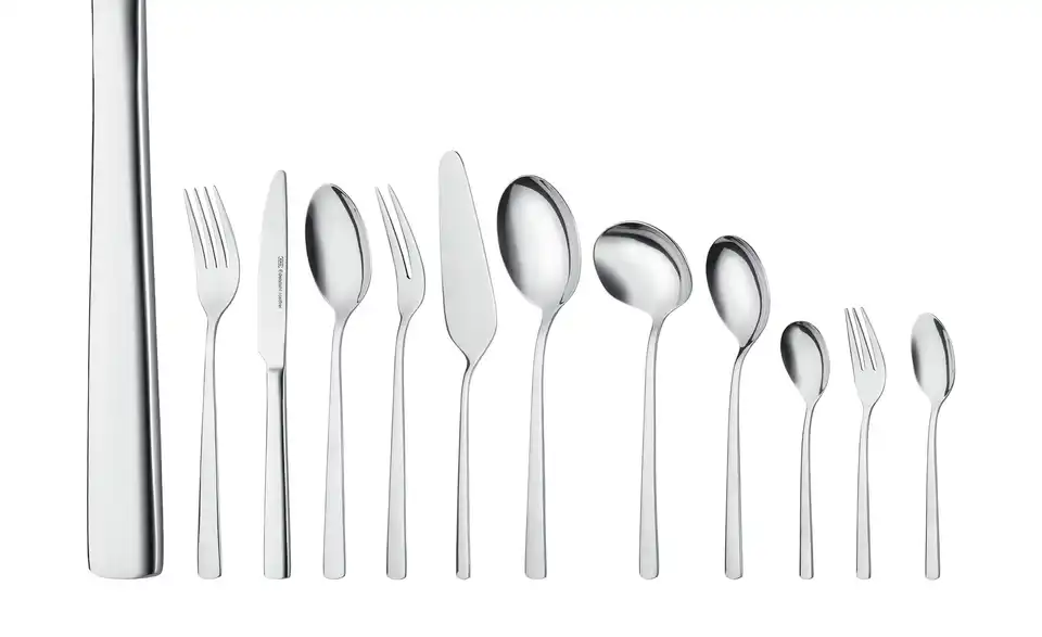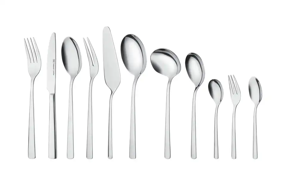 - Lieferumfang / mitgeliefertes Zubehör12x Menügabel12x Menümesser12x Menülöffel12x Kaffeelöffel12x Kuchengabel2x Servierlöffel2x Fleischgabel1x Saucenlöffel1x Tortenheber1x Sahnelöffel1x Zuckerlöffel