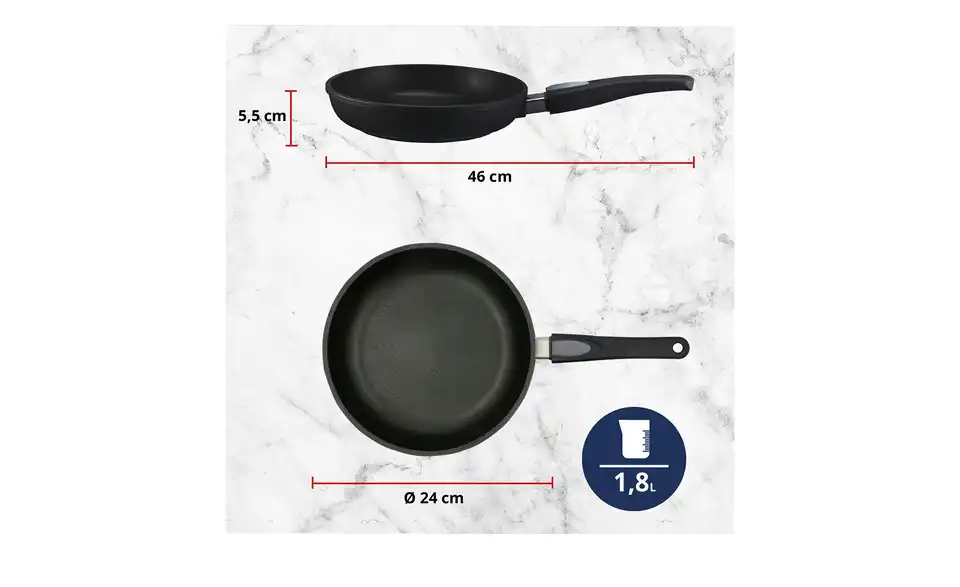 - Mehr zu MaterialAluminium-Handguss, Titanium-Antihaftversiegelungca. 10 mm starker Induktionsboden