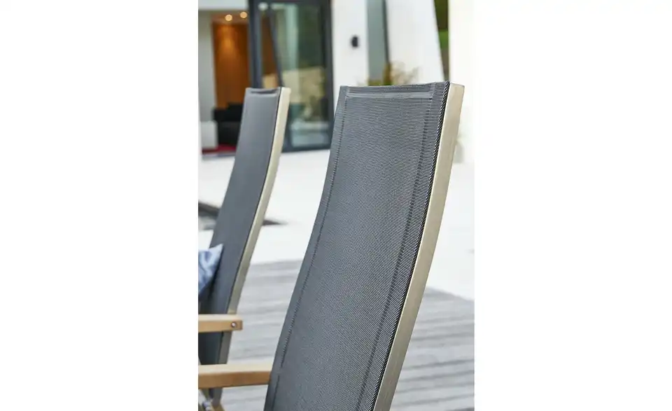 Die Serie London ist eine absolut kombinationsfreudige Outdoor-Serie für Ihren Garten, die Terrasse und den Balkon. Auch der Klappsessel der Serie überzeugt mit seinem schlichten und wetterfesten Design. Lehnen Sie sich zurück und verstellen Sie je nach Bedarf die Sitzposition. Die Rückenlehne lässt sich nämlich in fünf verschiedene Positionen verstellen. Die Armlehnen mit Teakholz-Applikationen laden zum Entspannen ein und verleihen dem Klappsessel eine natürliche Note.Lieferung & Versand