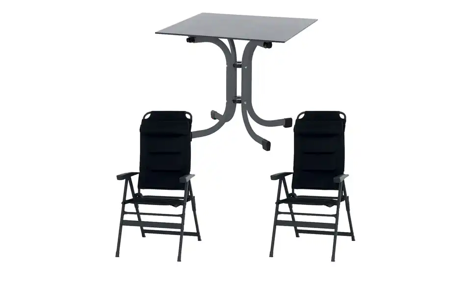 - Mehr zu Maßen1 Klapptisch (80x80x71cm), 2 Campingsessel (76x61x121cm)