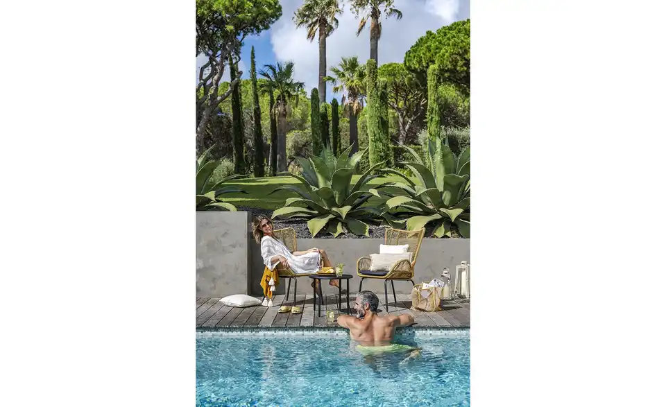 - Material Füße / GestellStahl pulverbeschichtetPolyrattan