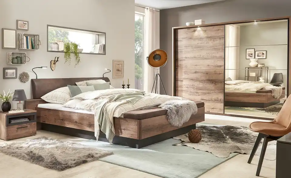 - nicht im Lieferumfang enthaltenLattenrost und MatratzenBeleuchtungNachtkommode, Schwebetürenschrank und Kommode