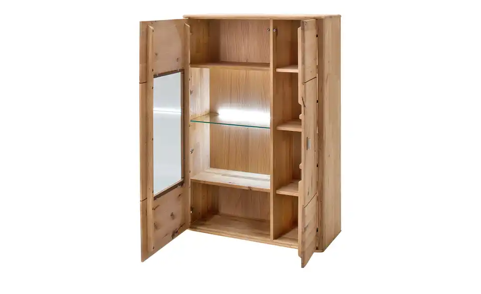 - Mehr zu MaterialFront aus Massivholz in Balkeneiche Bianco geöltKorpus aus Massivholz in Eiche Bianco geölt und keilverzinktRückwand und Schubkastenböden beidseitig furniert in EicheFrontverglasung aus ESG (Einscheibensicherheitsglas) in Parsol Grau