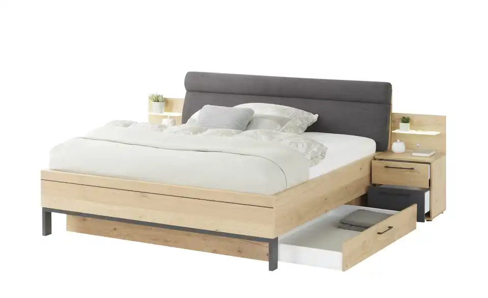 - Mehr zu Farbeunterer Schubkasten in Lack BasaltKopfteil Stoffbezug in Anthrazit