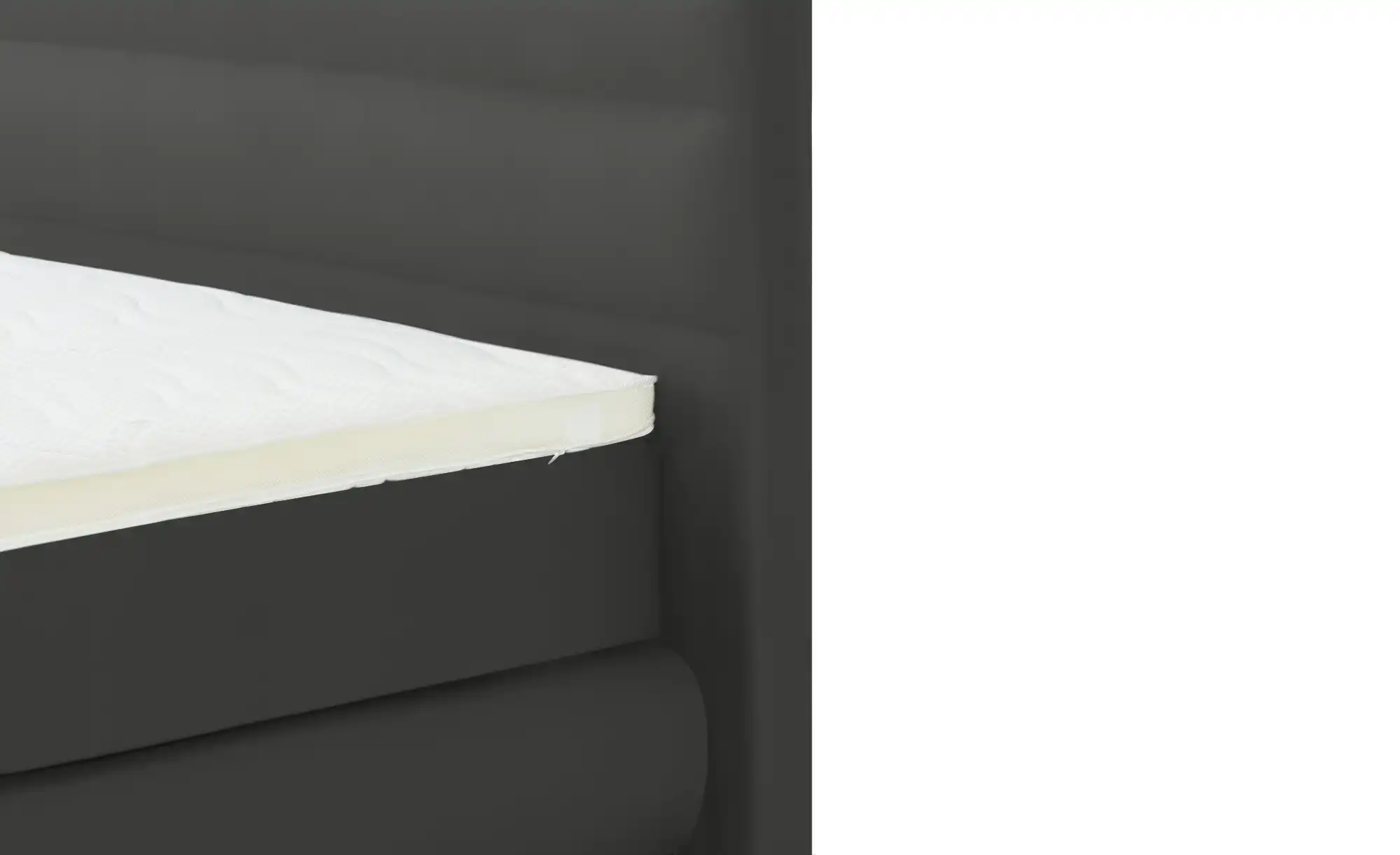 - Materialzusammensetzung TextilBettgestell (Boxhusse, Kopfteil, Matratze) Kunstleder (100% Polyurethan)Topperbezug, Matratzen- und Box-Spiegel Jersey Drell (100% Polyester)