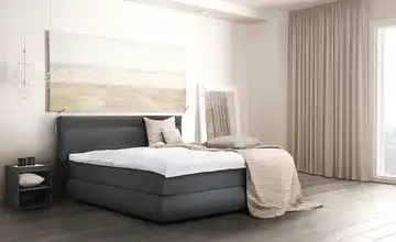 - Materialzusammensetzung TextilBettgestell (Boxhusse, Kopfteil, Matratze) Kunstleder (100% Polyurethan)Topperbezug, Matratzen- und Box-Spiegel Jersey Drell (100% Polyester)