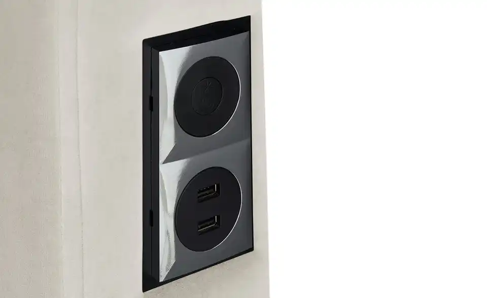 - Mehr zu Ausstattung / Funktion7 LiegezonenEckapplikationen in Chrom am Untergestellinklusive 2er-Set Schwanenhalslampen am Kopfteil mit Tasterinklusive LED Beleuchtungsset für Kopfteil und Unterflurbeleuchtung mit 2 Kombi-Lichtschalter jeweils mit Zweifach-USB-Eingang
