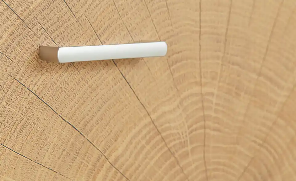 - Mehr zu MaterialKorpus aus Holzwerkstoff melaminbeschichtet in Artisan Eiche (Nachbildung)Front aus Holzwerkstoff beschichtet in Weiß hochglanz / Absetzung in Hirnholz (Nachbildung)Griffe aus Metall in Nickel matt