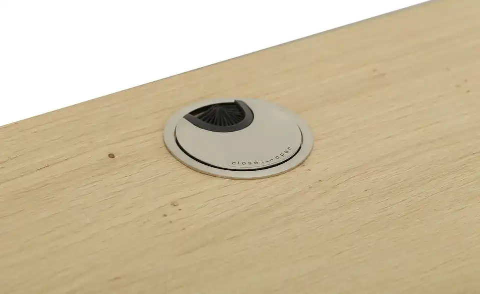 - Mehr zu Ausstattung / FunktionKlappen mit GasdruckdämpferMedienboard mit Designkufe 3 Raster wandhängendMetallkabeldurchlass im Deckblatt