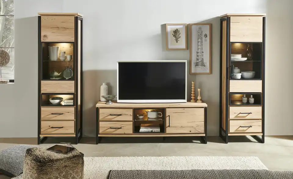 - Mehr zu MaterialStollen aus Massivholz Schwarz lackiertKorpus und Front aus Eiche furniert in Vintage Smoked oak