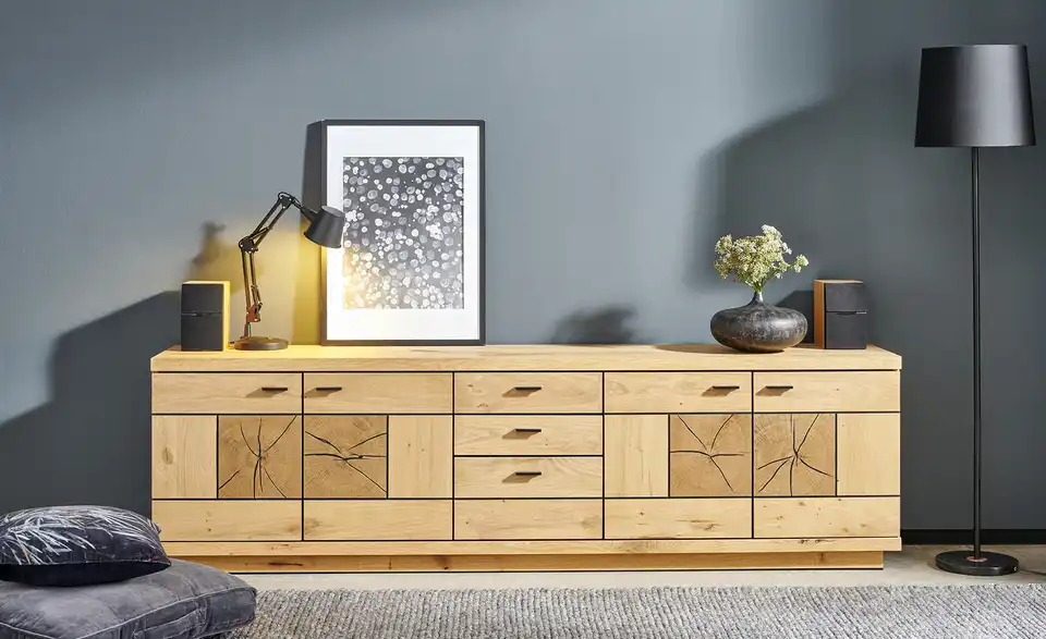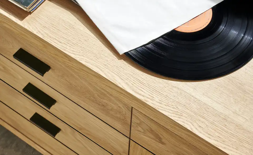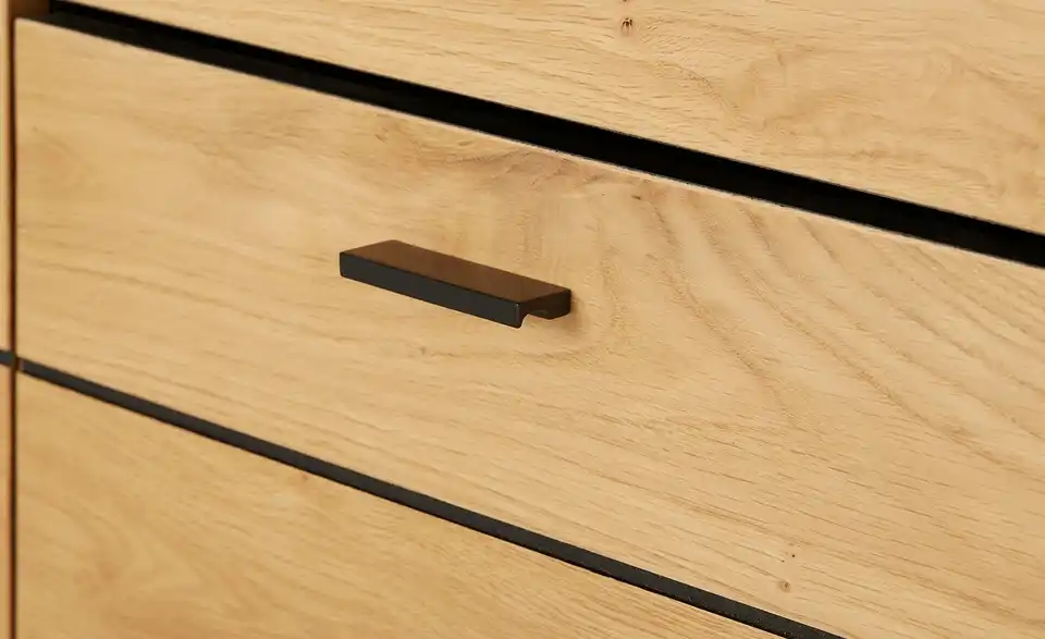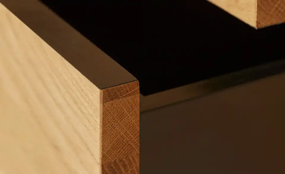 - Mehr zu MaterialKorpus und Front aus Holzwerkstoff furniert in Wildeiche geölt