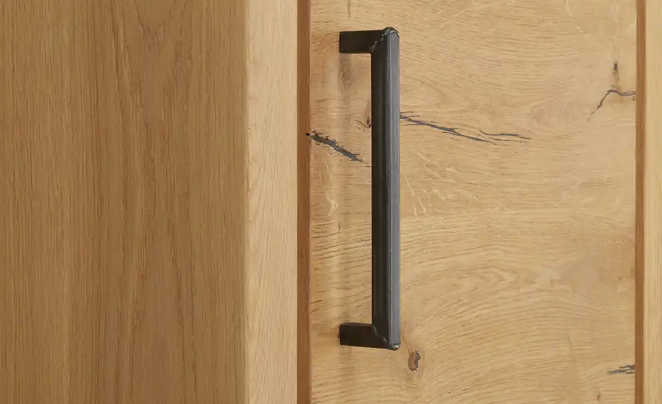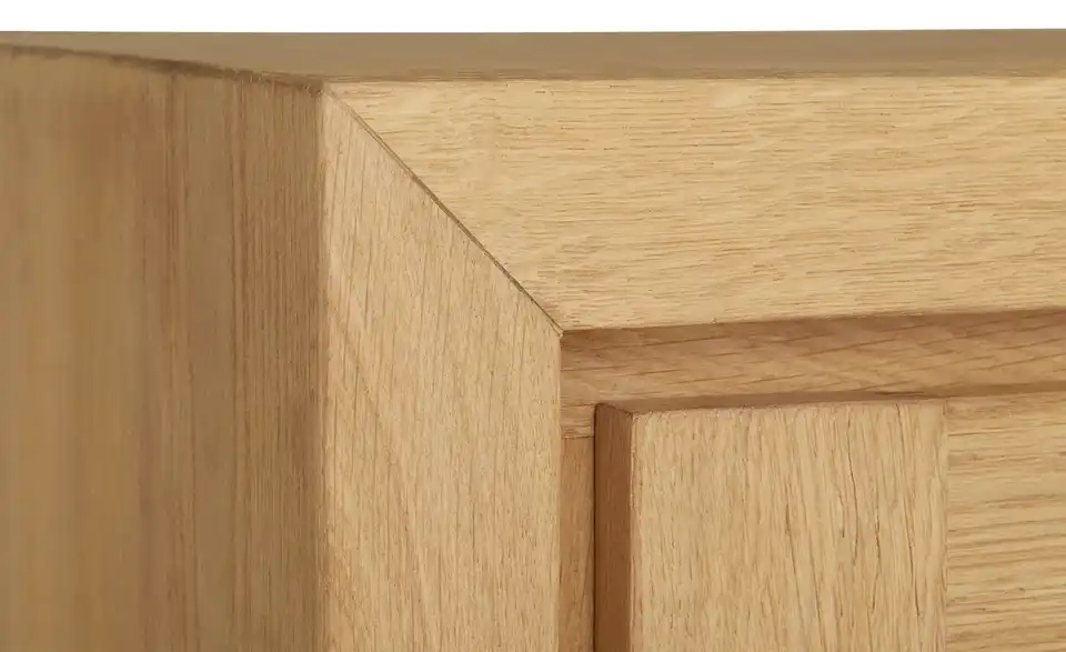 - Mehr zu MaterialKorpus und Front aus Tischlerplatte furniert in Eiche lackiertTischlerplatte Vollholz-Platte mit zwei Schichten aus Eichenfurnier und einer mittleren Schicht aus Kiefer-Massivholz-Leisten