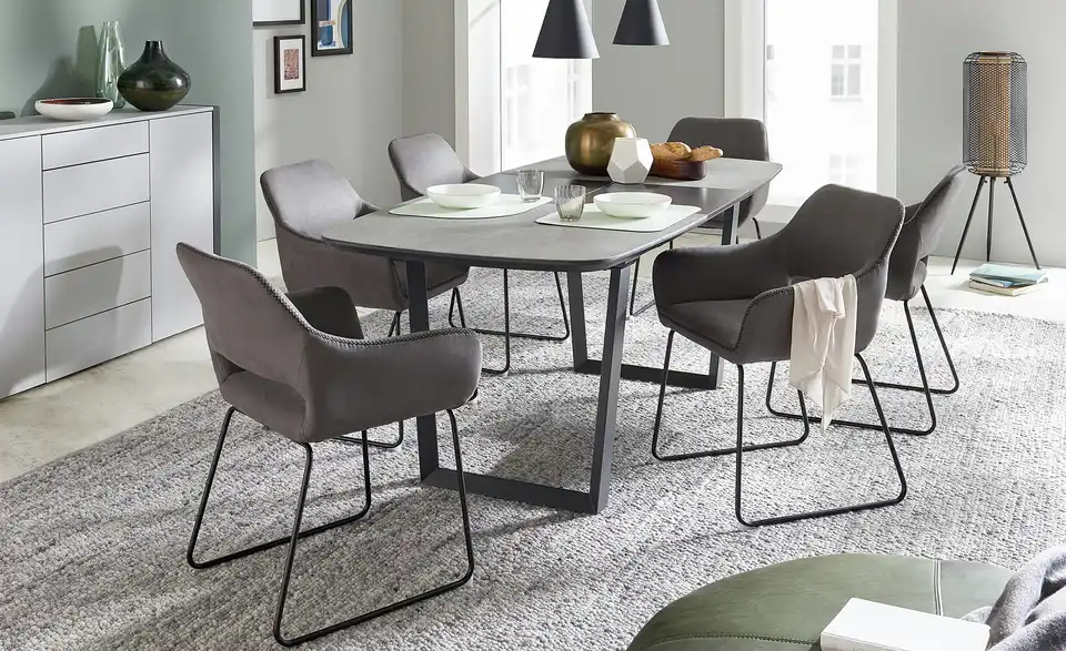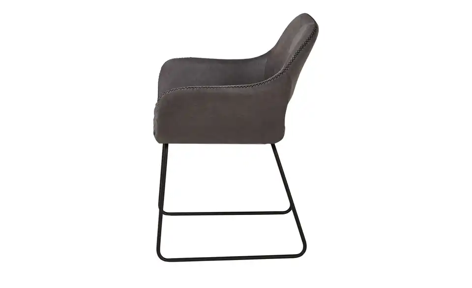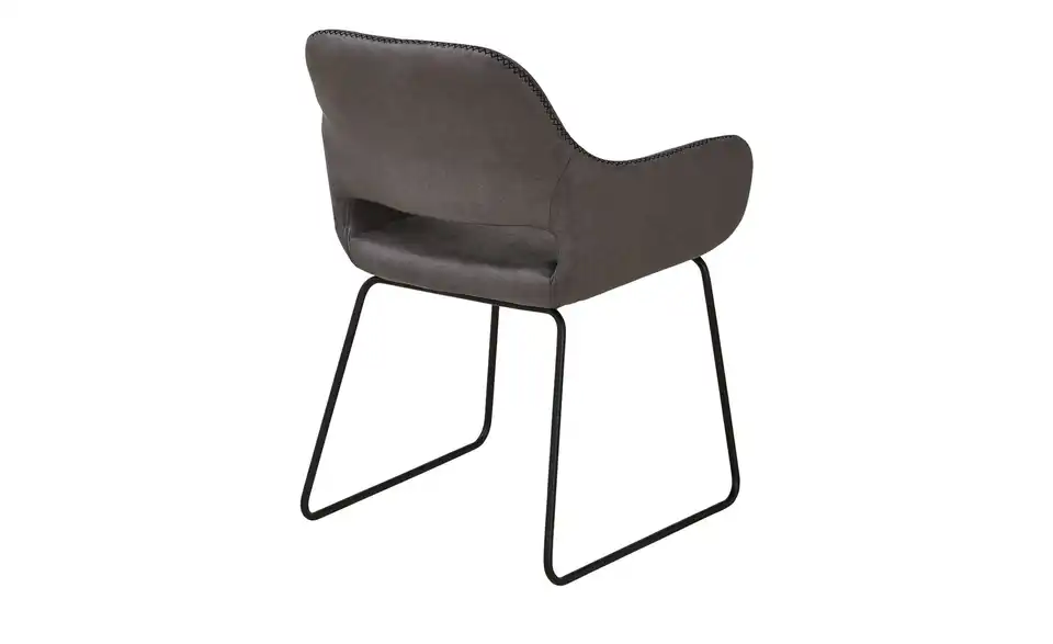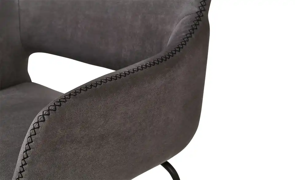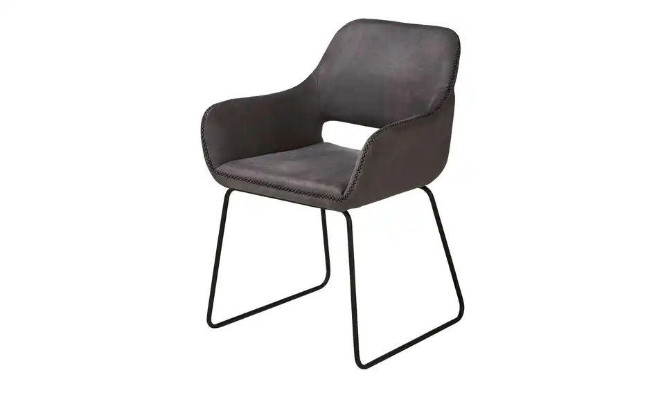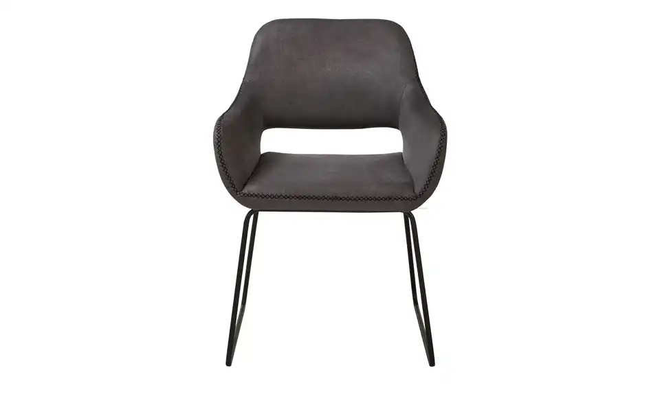 Dieser Stuhl schenkt Ihren vier Wänden ein behagliches Flair. Der Stuhl hat bequeme Armstützen, die den Sitzkomfort erhöhen und die individuelle Wohlfühlposition sichern, und verfügt über eine Polsterung aus Schaumstoff. Er besticht mit seinem Gestell aus schwarzem Metall. Sie müssen 56,5 x 82 x 59 cm als Stellmaß für das Möbelstück veranschlagen. Wo auch immer Sie diesen Stuhl aufstellen, wird Ihr zukünftiger Lieblingsplatz sein.Lieferung & Versand