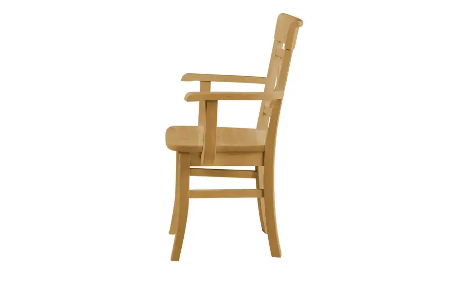 Wenn Sie Ihre vier Wände noch wohnlicher einrichten möchten, dann ist dieser Esszimmerstuhl genau das Richtige für Sie. Der Marken-Stuhl von maison bleue hat angenehme Armstützen, die den Komfort erhöhen und die individuelle Wohlfühlposition sichern. Er ergänzt Ihr persönliches Einrichtungskonzept durch sein ländliches Design. Das Gestell besteht aus hellbraunem Massivholz. Das Gesamtstellmaß des Stuhls beträgt 61 x 94 x 43 cm. Hier nimmt jeder immer wieder gerne Platz.Lieferung & Versand