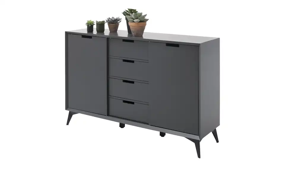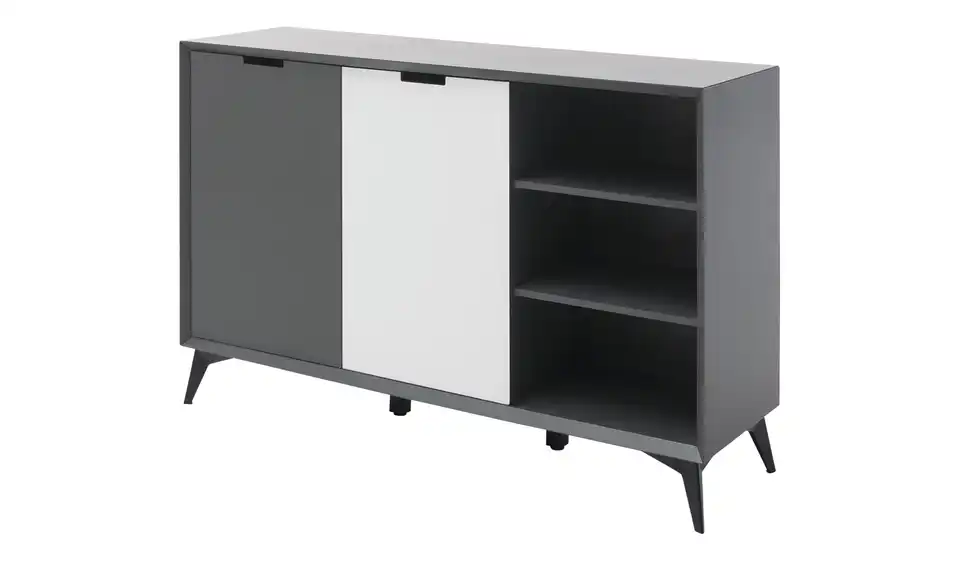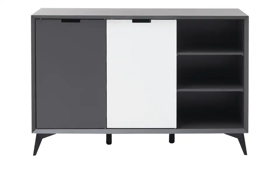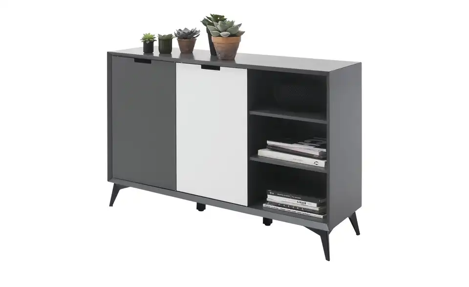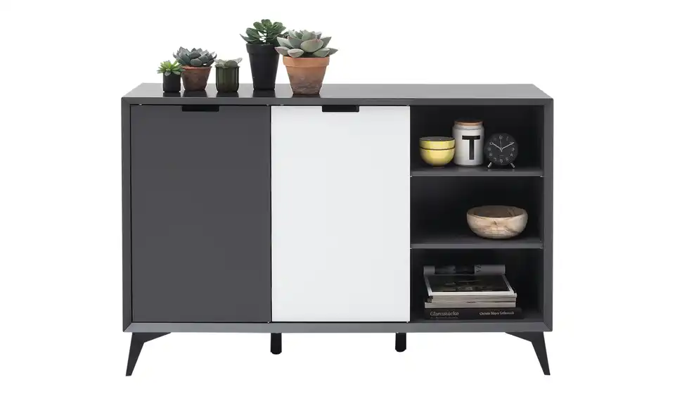 Das moderne Highboard bietet verschiedene Optiken und Farbkombinationen durch das Drehen und Umplatzieren der AusstattungLieferung & Versand