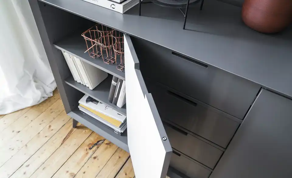 - Farbe / Dekor sichtbare RückwändeDunkelgrau