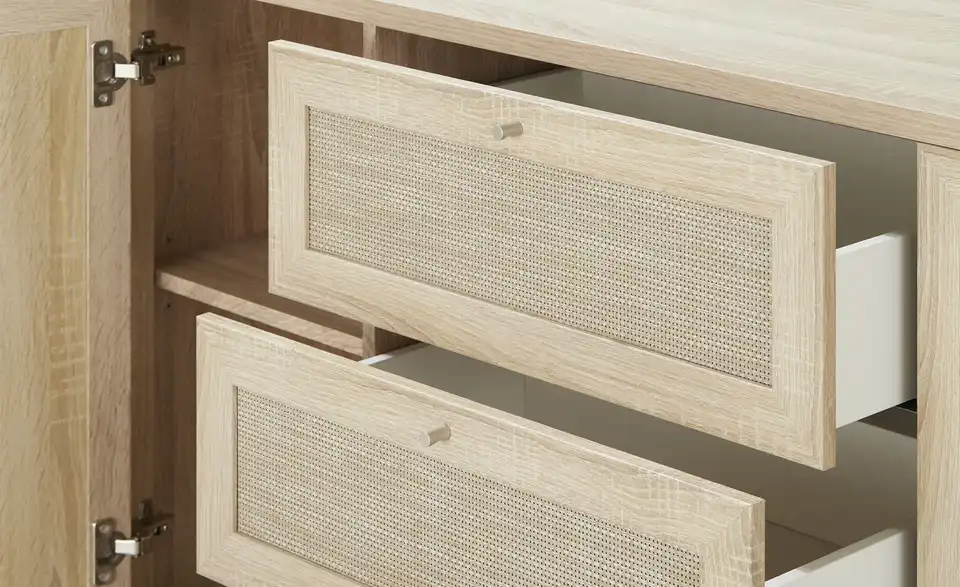 - Farbe / Dekor FrontEiche sägerau (Nachbildung)Rattan (Nachbildung)