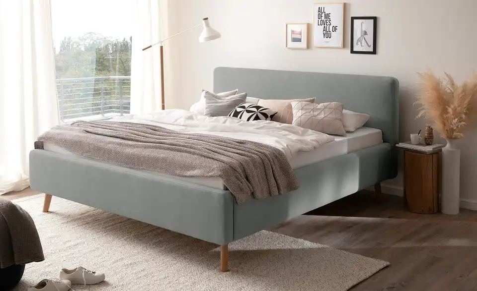 - Halbhohes Kopfteil, abgerundete Ecken