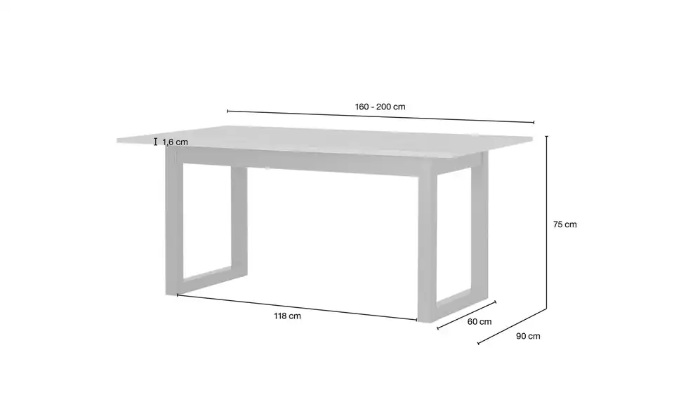 - Mehr zu MaßenBreite der Tischbeine 60 cmAbstand zwischen den Beinen 118 cm