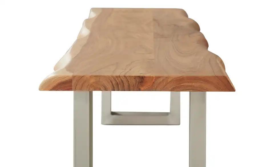 DINE + MINE ist Ihre Marke für markante Speisezimmer-Möbel aus Echtholz und Metall. Mittelpunkt der Esszimmer-Kollektion ist das Tischsystem SigNature aus Akazienholz, bei dem jeder Tisch ein Unikat ist. Die rustikalen Tischplatten verfügen nicht nur über eine einzigartige Maserung, sondern fallen auch durch ihre Längskante in außergewöhnlichen...