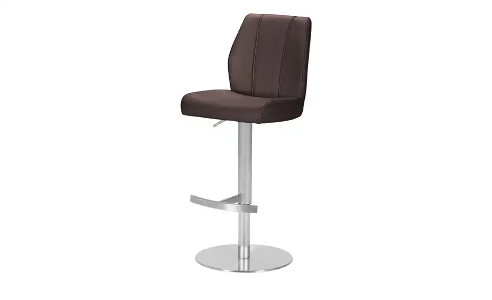 Gelungene Optik und bequemen Sitzkomfort können Sie mit diesem Hocker genießen. Dank der Höhenverstellung haben Sie es auf dem Hocker stets wunderbar gemütlich. Das Sitzmöbel weist eine nützliche Drehfunktion als besonderes Highlight auf. Es begeistert durch sein zeitloses, modernes Design, lädt auch aufgrund der bequemen Polsterung aus Schaumstoff zum Entspannen ein und ist für 120 kg ausgelegt. Der Sitzhocker hat ein Breitenmaß von insgesamt 42 cm, ein Höhenmaß von 89 cm sowie eine Tiefe von 52 cm. Praktisch: ein Hocker ist bei Bedarf schnell hervorgezaubert und verstaut.Lieferung & Versand