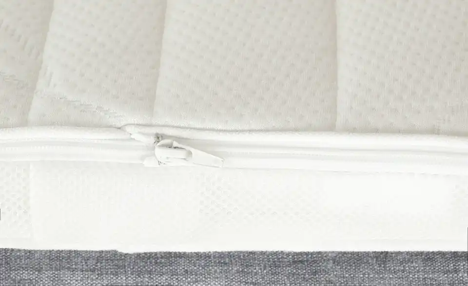 - Mehr zu MaterialZusammensetzung Topperkern 80% synthetisches Latex, 20% Natur LatexKopfteil Holzwerkstoff Gepolstert Stoffbezogen