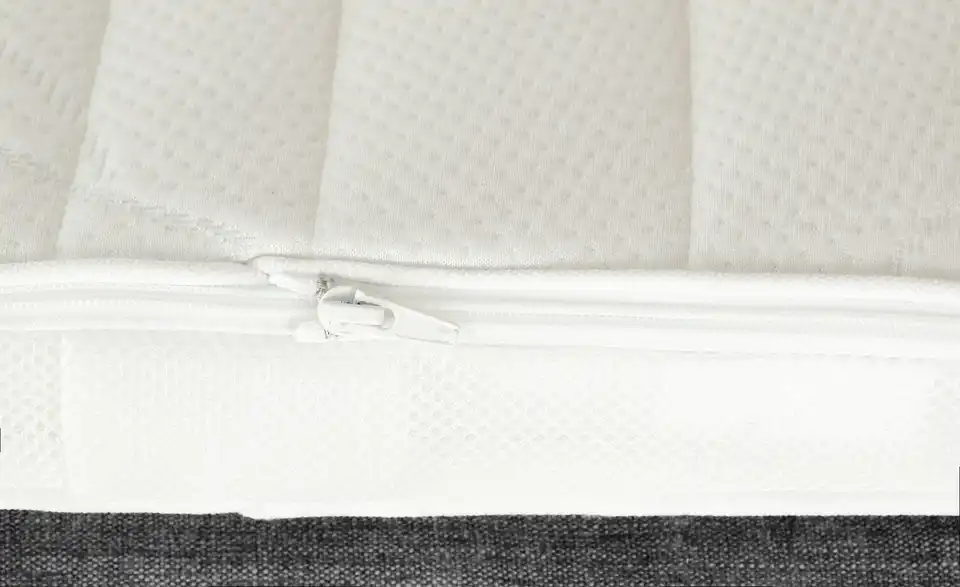 - Mehr zu MaterialZusammensetzung Topperkern 80% synthetisches Latex, 20% Natur LatexKopfteil Holzwerkstoff Gepolstert Stoffbezogen