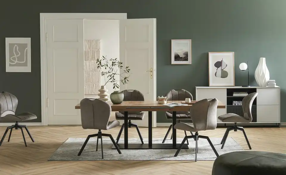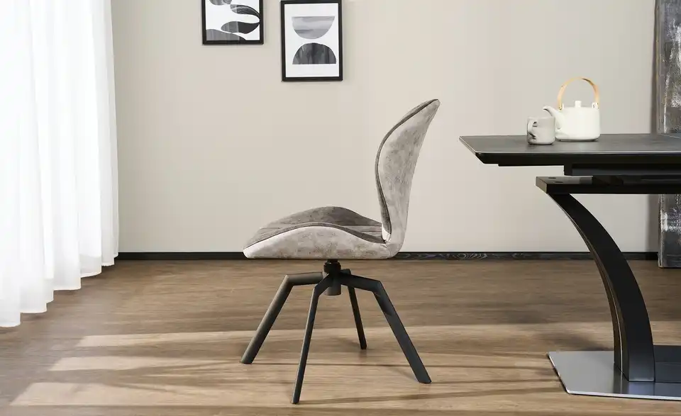 Dieser Stuhl lädt nicht nur zum Sitzen und Entspannen ein, sondern verleiht auch Ihrem Interieur eine wohnliche Stimmung. Sie werden dank der praktischen Drehfunktion sehr viel Freude mit dem Modell haben. Mit der bequemen Polsterung aus Schaumstoff bietet der Stuhl hohen Komfort. Das Gestell aus schwarzem Metall ist das Fundament des Sitzmöbels. Das Stellmaß des Stuhls beträgt 51 x 89 x 62 cm. Hier nimmt jeder immer wieder gerne Platz.Lieferung & Versand