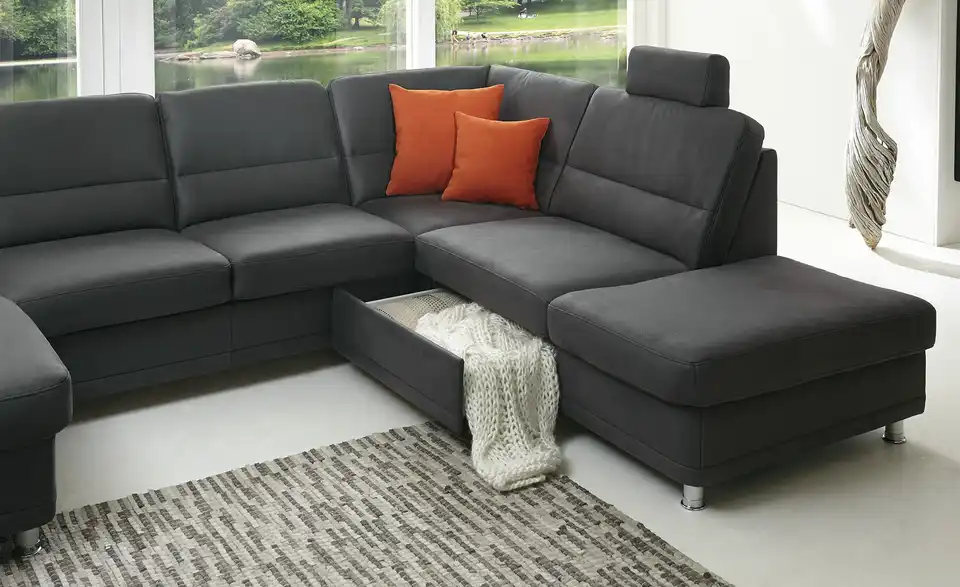 Für jedes Zuhause ist die Wohnlandschaft Marc die ideale Ergänzung. Die Kopfstützenverstellung verwandelt das Sofa in Ihr neues Lieblingsmöbel. Mit der bequemen Polsterung aus Kaltschaum bietet der Markenartikel von Kollektion Kraft optimalen Sitzkomfort. Dieses Sofa wird ganz schnell zu einem echten Entspannungsort, der Ihren vier Wänden optisch wie funktional den letzten Schliff verleiht.Lieferung & Versand