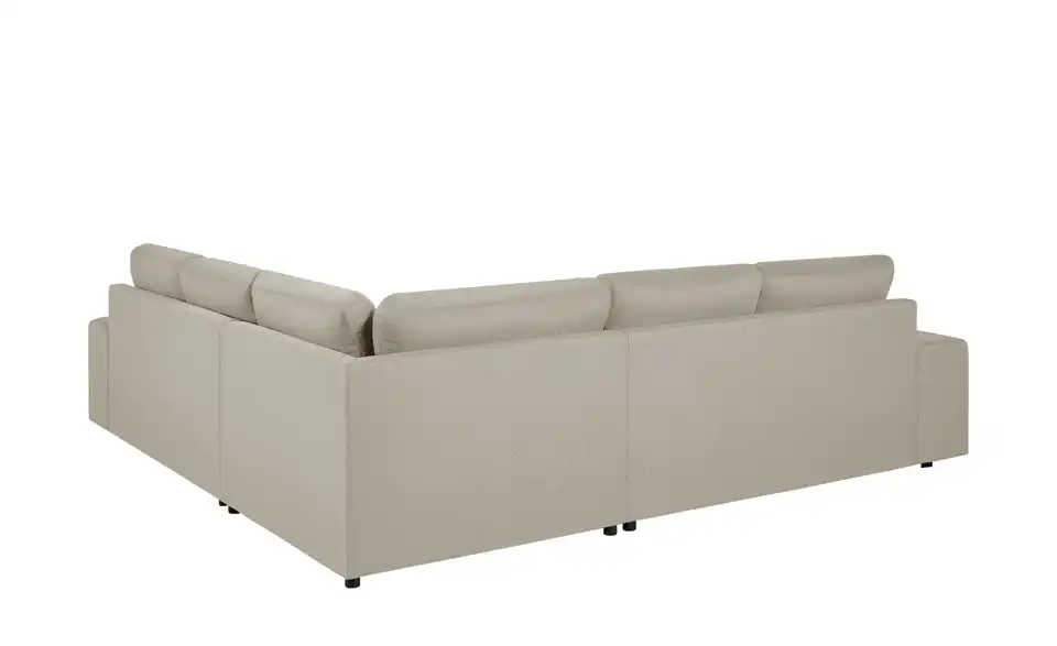 Mit diesem Ecksofa nutzen Sie Ihr Zuhause hervorragend aus. Die Couch lässt sich dank des echt bezogenen Rückens frei im Raum platzieren und hat eine komfortable Polsterung aus Schaumstoff für das maximale Wohlfühlerlebnis. Das Fundament des Sitzmöbels ist ein Gestell, welches aus Massivholz besteht. Um Rückenkissen brauchen Sie sich keine Gedanken mehr zu machen, denn diese liegen dem Sofa bereits bei. Lehnen Sie sich bequem zurück und genießen Sie die Entspannung auf der Couch.Lieferung & Versand