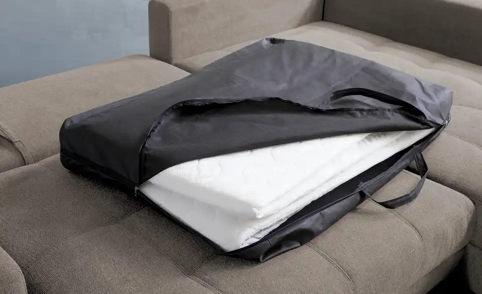 - Lieferumfang / mitgeliefertes Zubehör5 x Rückenkissen, 2 x Zierkissen, 1 x Topper mit Transporttasche