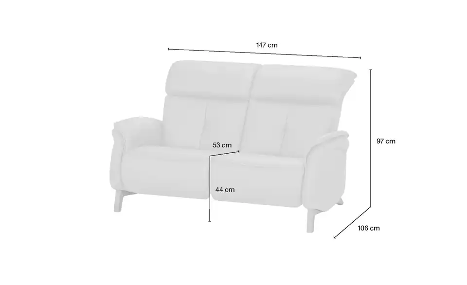 Auf diesem Sofa lässt es sich entspannt ausruhen oder sitzen. Umfassender Komfort und durchdachtes Design machen die Couch in Markenqualität von himolla aus. Das Sitzmöbel ist dank der Kopfteilverstellung eine richtige Oase der Entspannung und hat einen echt bezogenen Rücken, sodass es auch mittig im Raum platziert werden kann. Der Rahmen ist aus Massivholz gefertigt. Die Couch nimmt insgesamt 147 x 97 x 106 cm ein. Dieses Sofa wird im Nu zu einem richtigen Entspannungsort, der Ihre vier Wände auf ästhetische und praktische Art und Weise aufwertet.Lieferung & Versand