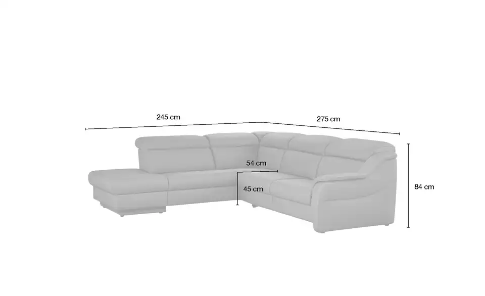 Mit diesem Ecksofa nutzen Sie Ihre vier Wände perfekt aus. Sie können dank der Kopfstützenverstellung viele gemütliche Stunden auf dem Sitzmöbel verbringen. Lassen Sie sich von der bewährten Qualität und dem durchdachten Design der Marke himolla überzeugen. Das Sofa lädt auch aufgrund des Federkerns zum Relaxen ein. Das Gestell besteht aus Kunststoff. Das Stellmaß beläuft sich auf 275 x 84 x 245 cm. Dieses Sofa sorgt für einen komfortablen Lebensstil mit Ruhe und Flair.Lieferung & Versand