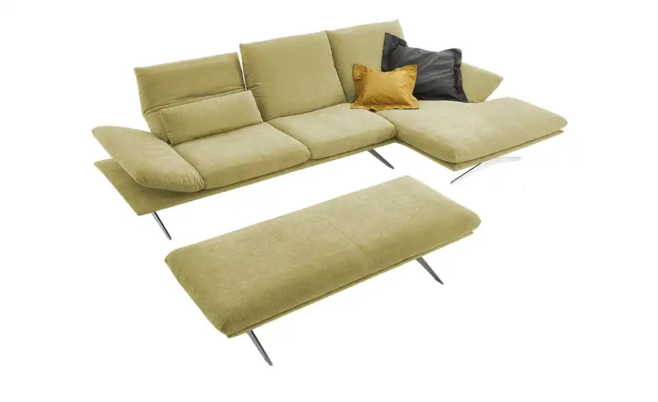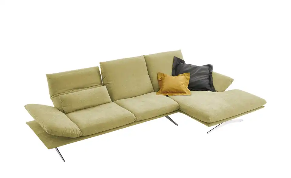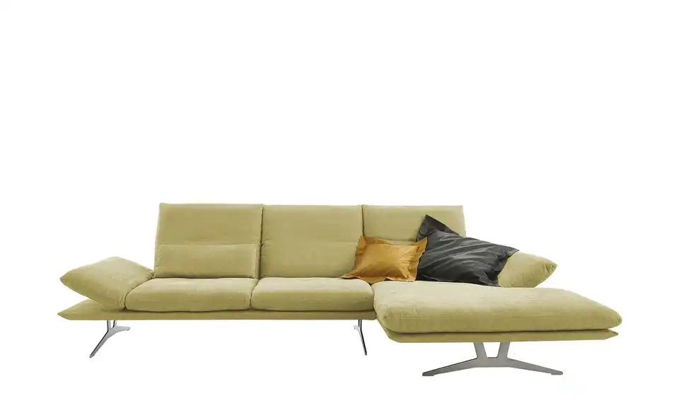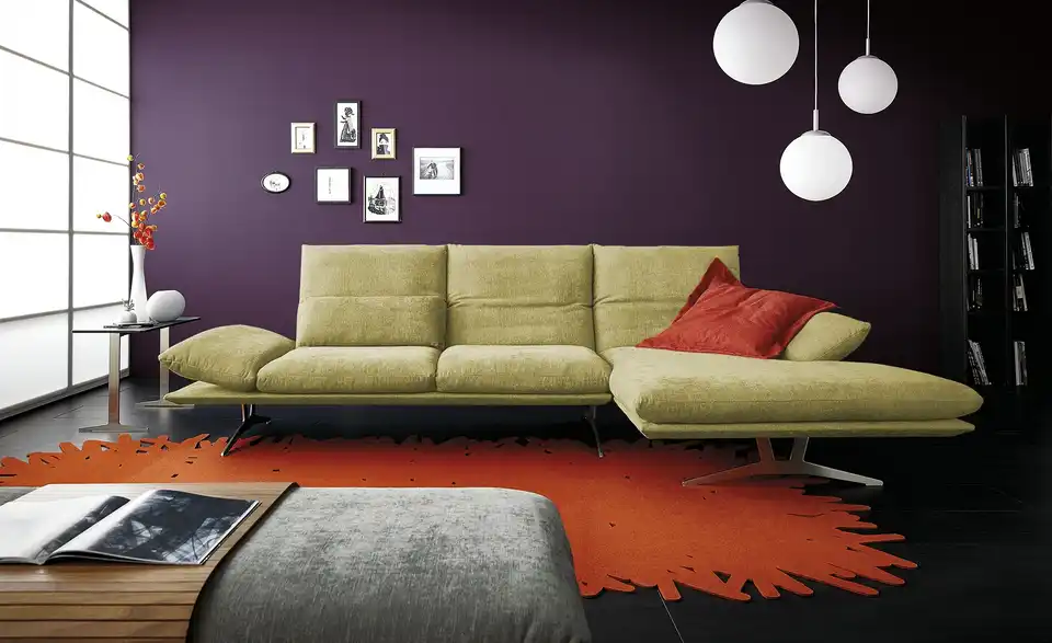 Nach einem langen Arbeitstag ist dieses Ecksofa genau der richtige Platz zum Entspannen. Die Relaxfunktion, die Armteilverstellung und die Kopfteilverstellung sorgen für ein hohes Maß an Behaglichkeit. Das Sofa der Marke KOINOR lädt dank der Polsterung aus Schaumstoff zum Entspannen ein. Der Rücken des Sitzmöbels ist echt bezogen, damit es ohne Probleme mitten im Raum aufgestellt werden kann. Das Modell Francis hat ein Gestell, das aus Metall besteht. Es lädt mit der besonders großen Sitztiefe von 65 cm zum Entspannen ein und nimmt insgesamt 314 x 93 x 159 cm ein. Mit diesem Sofa gestalten Sie Ihre vier Wände behaglich.Lieferung & Versand