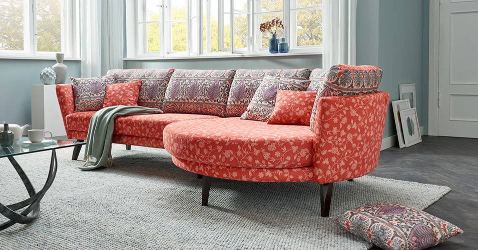 Alles andere als langweilig ist die Kooperation der westfälischen Polstermöbelmanufaktur Schröno mit dem italienischen Textilunternehmen Bassetti. Die fantasievollen, fröhlichen Muster von Basetti treffen auf Möbelqualität made in Germany. Die Sofas, Hocker und Poufs einer Serie können Sie kombinieren oder als Eye-Catcher-Einzelstück platzieren.