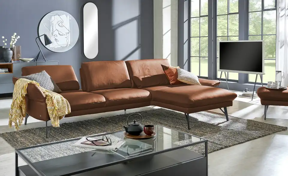 Für Ihre Inneneinrichtung ist dieses Ecksofa eine wunderbare Ergänzung. Dank der Armteilverstellung sowie der Sitztiefenverstellung wird die Couch der Marke himolla zu einer absoluten Oase der Entspannung. Sie verfügt über eine bequeme Polsterung aus Kaltschaum und ist frei im Raum platzierbar. Ein Gestell aus Metall bildet das Fundament der Couch. Durch die geräumige Sitztiefe von 129 cm können Sie auf diesem Sofa ausgesprochen gemütlich sitzen. Ob mit einem guten Buch oder beim Fernsehabend – mit der Couch sind Sie für jede Situation bereit.Lieferung & Versand