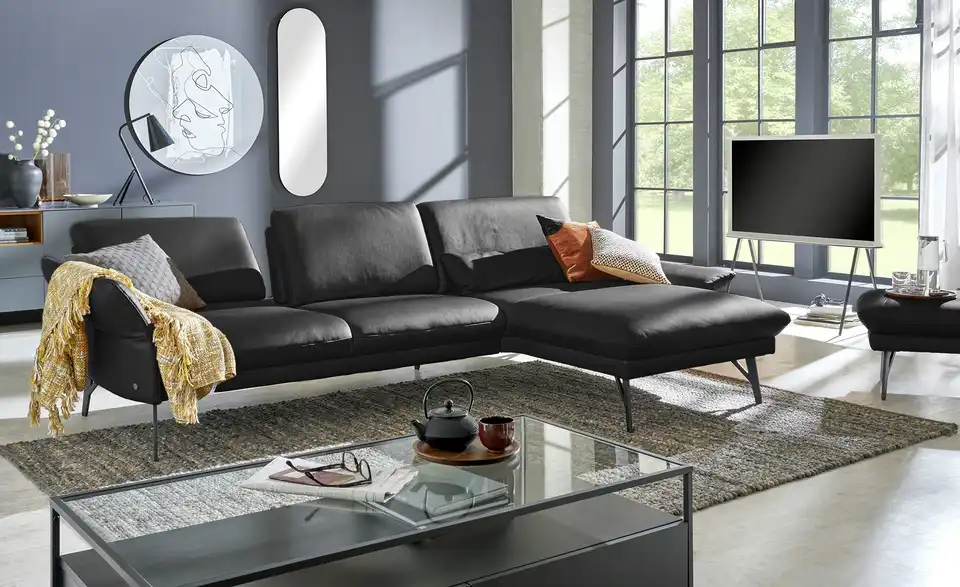 Dieses Ecksofa ist perfekt für entspannte Abende in Ihrem Zuhause. Die Armstützenverstellung und die Sitztiefenverstellung verwandeln die Couch in Ihren neuen Lieblingsplatz. Alle Qualitäten und Highlights der Marke himolla werden in diesem Polstermöbel zusammengebracht. Die Couch lädt auch aufgrund der Polsterung aus Kaltschaum zum Relaxen ein und ist dank des echt bespannten Rückens frei im Raum platzierbar. Ein Gestell, welches aus Metall besteht, ist die Basis des Sitzmöbels. Sie können es sich dank der 129 cm tiefen Sitzfläche auf dieser Couch wunderbar gemütlich machen. Mit Sicherheit wird das Sofa zum neuen Höhepunkt Ihrer vier Wände.Lieferung & Versand