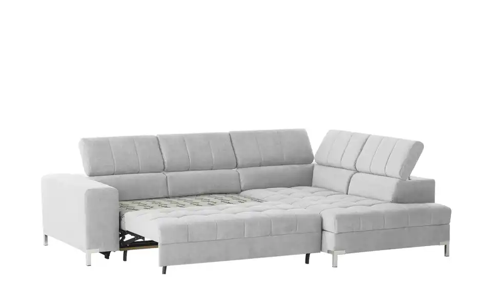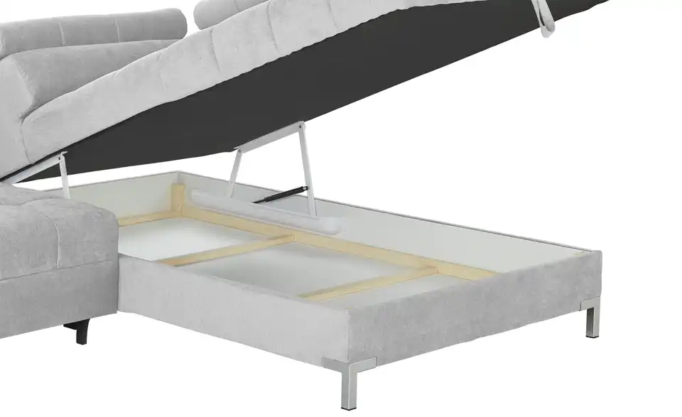 In Ihren vier Wänden sorgt dieses Ecksofa für ein hohes Maß an Behaglichkeit. Das Sofa ist aufgrund der Kopfteilverstellung extrem gemütlich, kann dank des echt bespannten Rückens frei im Raum platziert werden und hat einen Federkern sowie eine komfortable Polsterung aus Schaumstoff für das maximale Wohlfühlerlebnis. Ein Gestell aus Metall bildet die Basis des Sitzmöbels. Das Polstermöbel hat einen integrierten Bettkasten, nimmt insgesamt 284 x 97 x 200 cm ein und lädt mit der stattlichen Sitztiefe von 62 cm zum Relaxen ein. Diese Couch wird rasch zum neuen Höhepunkt Ihres Zuhauses.Lieferung & Versand